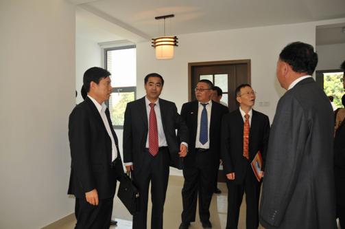 儀式結(jié)束后,鐘山副部長親切接見了江蘇省建集團(tuán)副總裁兼海外公司總經(jīng)理張三旗,聽取了項(xiàng)目組關(guān)于項(xiàng)目施工情況的匯報(bào)。隨后,鐘山在吳澤獻(xiàn)、魏勝梓、張三旗和項(xiàng)目組主要負(fù)責(zé)人的陪同下,參觀了新落成的館舍。