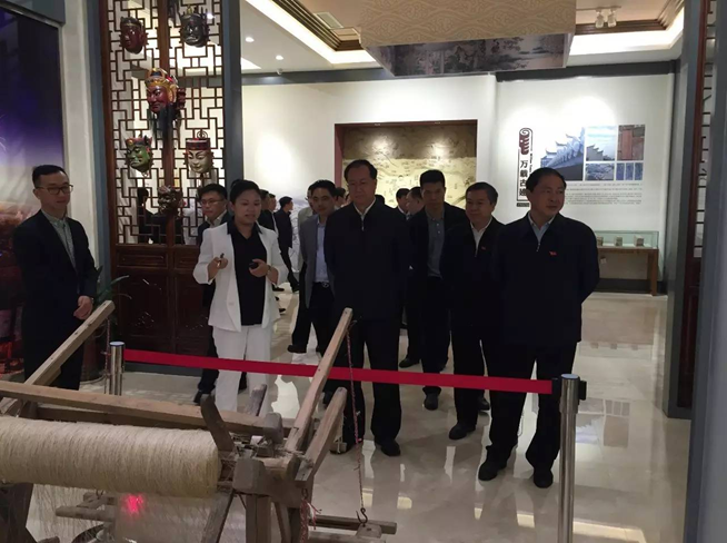 毛偉明首先視察了萬載古城文化展示中心,領略了當?shù)厣詈竦拿袼?、非遺文化,并認真聽取了集團萬載瑞辰文化旅游發(fā)展有限公司總經(jīng)理張藜對古城項目的詳細介紹。